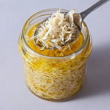 一番シンプルなプレーンは、とことん潔くオリーブオイルとしらすだけ。うちのしらすを知っていただくにはまずはそのまま食べてください。そのまま味わったあとには、お好みでパンやパスタに合わせたり、ご飯との相性も間違いなし。卵焼きにかけて食べるのも◎です!